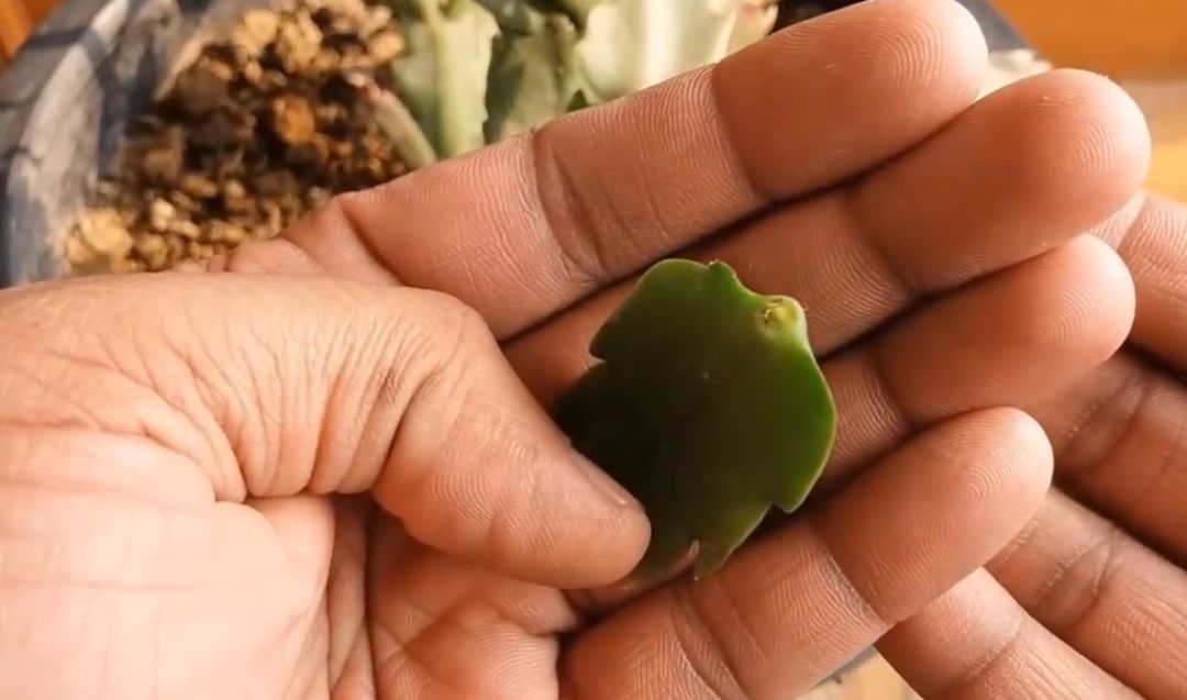 要注意选择那些已经开过花的枝条,有一个生长节点就可以了,这样一片叶片就算一个节点。刚剪下来的蟹爪兰叶片一定不要急着插在土壤里培育,一定要先晾干伤口,否则容易导致生根失败,严重的时候叶片就直接腐烂了。