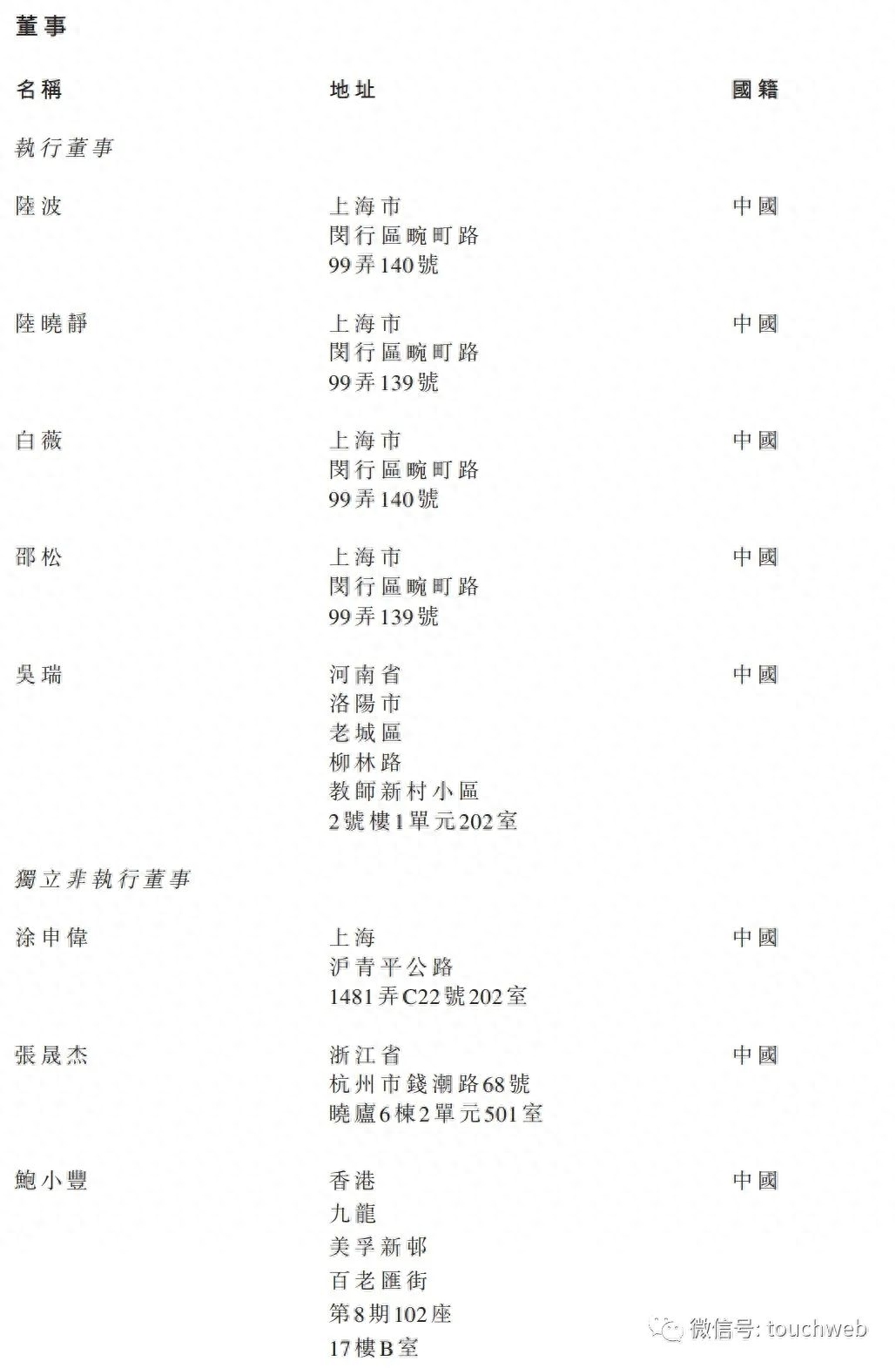 瑞昌国际执行董事分别为陆波、陆晓静、白薇、邵松、吴瑞;独立非执行董事分别为涂申伟、张晟杰、鲍小丰。