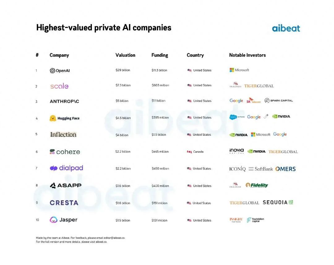 这些估值最高的AI初创公司代表了全球人工智能领域的创新和发展。它们的技术和产品不仅推动了商业领域的发展,还为各种行业带来了新的机会和挑战。