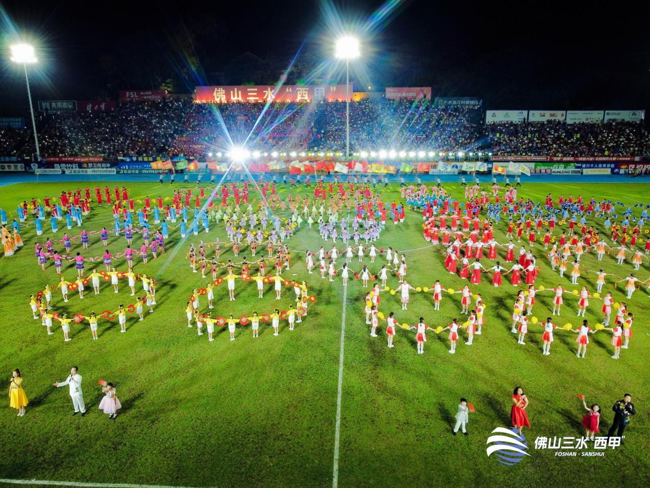 当晚的冠亚军争夺战开启前,可容纳万余人的云秀山体育场座无虚席。200位演员手持光板,通过光束变化拼出倒数数字和“西甲”字样,氛围感拉满。闭幕表演环节,节目《佛山节拍》率先登场,以文艺的形式呈现“功夫足球”“有家就有佛山造”的城市特色,以光影变化展示佛山速度。