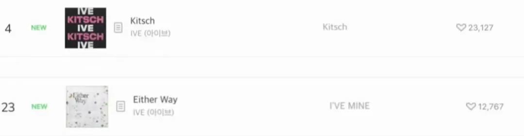 其一是先行曲音源成绩不佳,《Either Way》空降Melon日榜23位。这个名次乍一看还过得去,对比起很多大势男团,甚至可以说是非常出色。但是,上一次回归先行曲《Kitsch》空降Melon日榜第4位,对比起来就会看出这并不是IVE应有的音源成绩。