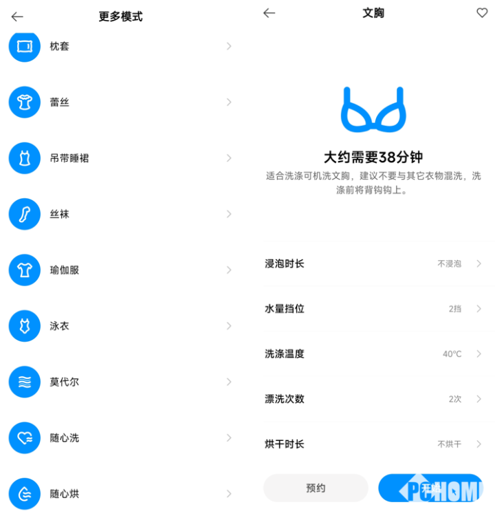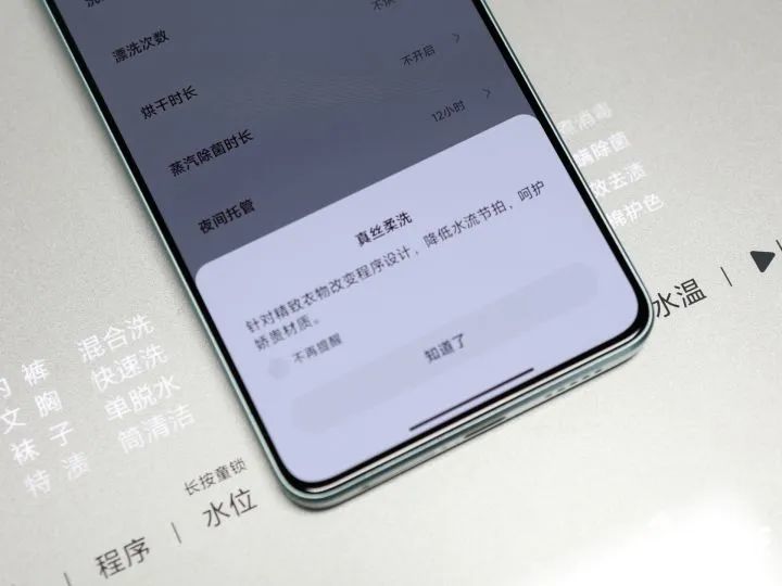 米家内衣物洗烘一体机针对不同材质提供专属的洗涤程序,包括蕾丝、袜子、特渍等等都有专属洗涤程序,用户在面板可以选择水位、蒸汽除菌、设置水温等等。在App端可以选择更多程序,可以设置浸泡时长、水量档位、漂洗次数、烘干时长、蒸汽除菌时长等等,完全可以根据衣物面料进行自定义。