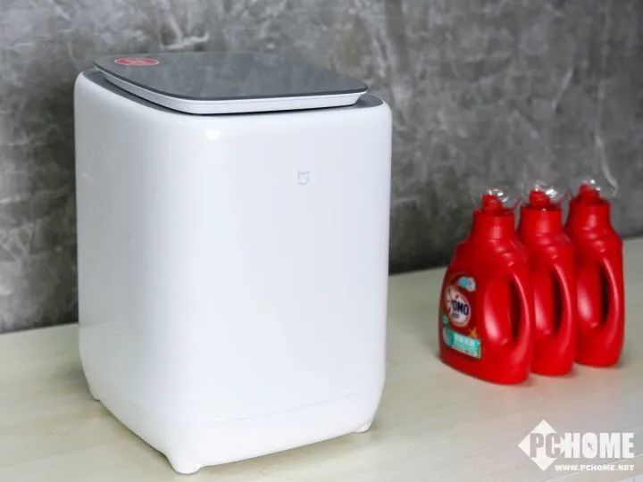 米家内衣物洗烘一体机的机身较为小巧,看上去和一个空气炸锅的大小差不多,摆在洗手间、阳台、甚至是滚筒洗衣机上都可以。0.5kg的洗涤容量适合于每日换洗,大概装下一套内衣裤或者3条内裤。