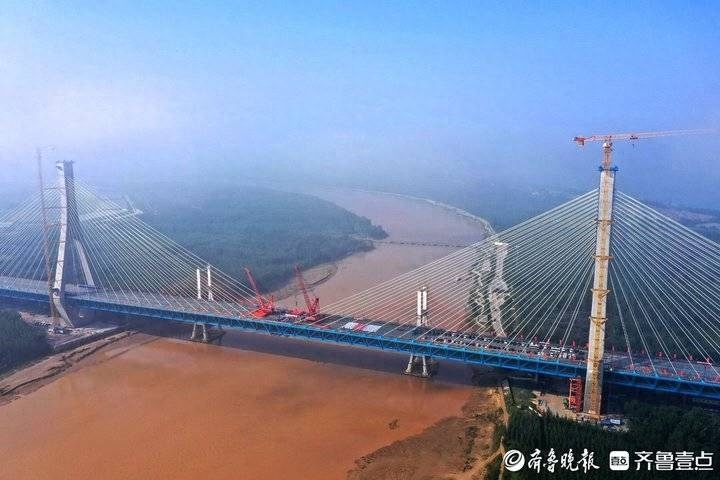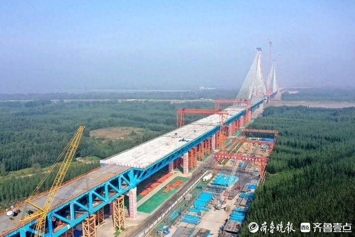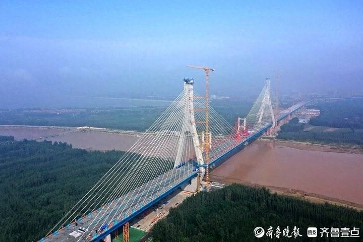 即将建成的济南黄河大桥新桥雄姿,工程总用钢量达七万吨