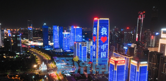 9月30日晚,济南经十路沿线楼体在夜空下流光溢彩,其中几栋楼体打出“今天是你的生日,我的中国”“锦绣中华”“盛世华诞”等字样祝福伟大祖国繁荣昌盛。