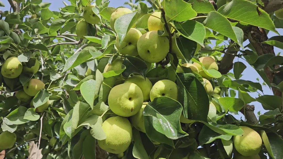 新疆的瓜果丰富,今年是个丰收年,“前几个月,我们卖的是哈密瓜,之后卖葡萄,葡萄卖完了以后又卖西梅,现在上架库尔勒香梨,等库尔勒香梨卖完了以后,冬天会上苹果”。