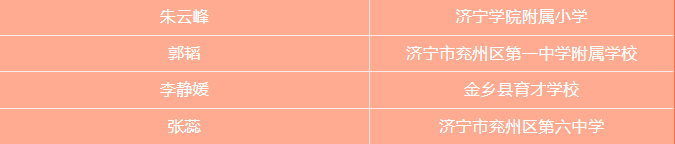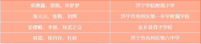 本次活动中,济宁市16所学校取得优异成绩,成果斐然。其中,4个作品获得一等奖、7个作品获得二等奖、5个作品获得三等奖,获奖数量位列全省第一!济宁市教育局获最佳组织奖(全省7个),金乡县育才学校获最佳完成奖(全省4个),济宁学院附属中学获最佳精神风貌奖(全省7个),12名教师获得最佳指导教师奖,4名教师获得特别(突出)贡献奖,一起来看获奖名单!