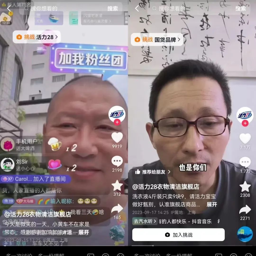 据《经济观察保》报道,因看到旗舰店直播间人数上涨,旗舰店的注册主体成都意中洗涤用品公司的副总经理胡文忠,才赶紧抓来两个大叔参与直播,一位是总经理助理万仲,一位是活力集团的驻厂代表沈军。