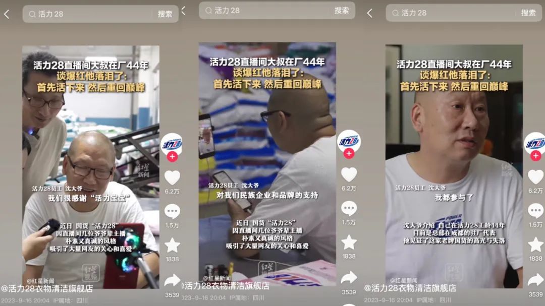 9月16日,国货活力28的主播沈大爷哭着说,“首先是活下来,然后是回到巅峰。” 沈大爷是活力28总部在成都的驻厂代表,已有44年工龄,见证了这家老牌国货的高光与失落。