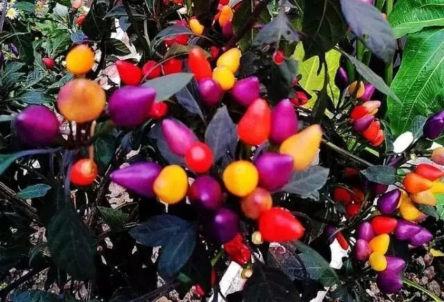 盆栽辣椒是比较常见的,冬春时节甚至可以在花市里看到各色各样的观赏椒盆栽,他的色泽一般都是黄色、红色和紫色混杂着,而且颜色会随着光照和时间而变化。