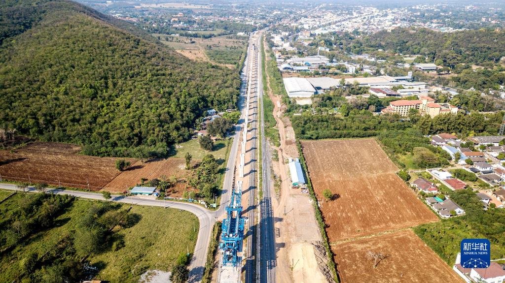 这是2023年2月23日在泰国呵叻府拍摄的中泰铁路建设现场(无人机照片)。作为中泰共建“一带一路”的旗舰项目及泰国首条标准轨高速铁路,中泰铁路采用中国标准设计建造,一期工程连接曼谷和呵叻,二期工程将实现与中老铁路衔接,经老挝磨丁和中国磨憨可以抵达昆明。