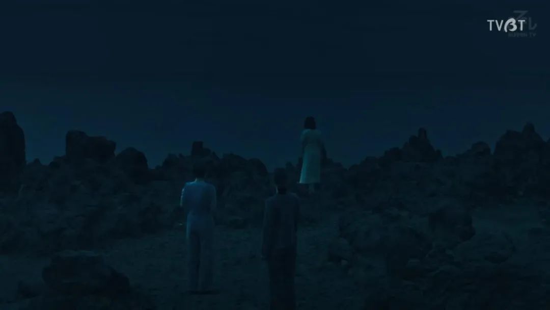 阿翠换上了由香里的衣服、鞋袜、手镯,随后,在悬崖上一跃而下。
