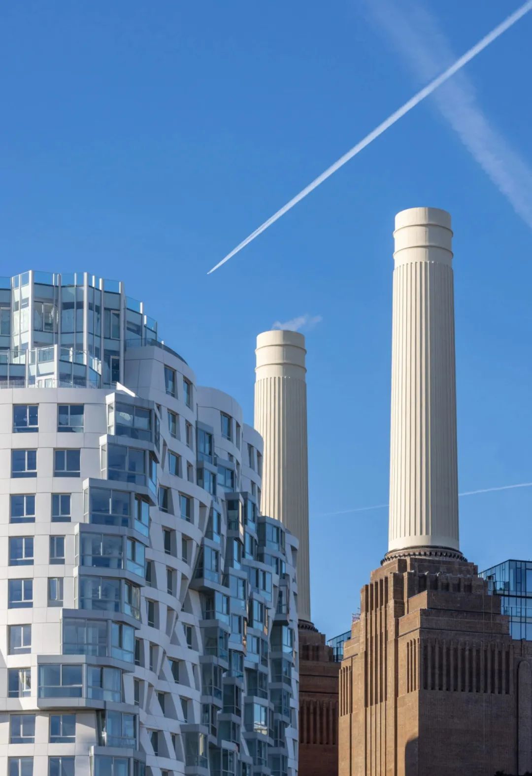 Prospect Place 是盖里在英国的第一个住宅项目。坐落于巴特西电站南侧,包括两座建筑,从外部看,两座建筑拥有标志性的雕塑般的白色立面,立面具有波纹效果,并嵌入大窗户。这与相邻电站统一的工业建筑形成对比,清楚地区分新旧。
