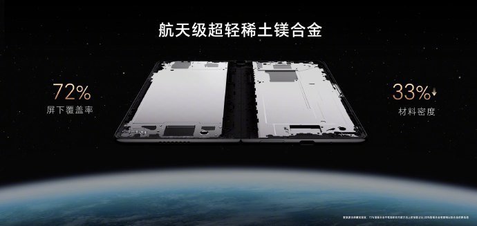 此外,荣耀Magic Vs2 还将屏幕支撑结构的 72% 支撑材料替换成了航天级稀土镁合金材质,材料密度直降 33%,这也是荣耀Magic Vs2 轻薄的又一个重要的亮点。在轻薄的机身下还有 5000mAh 大容量电池,缓解你的续航焦虑。
