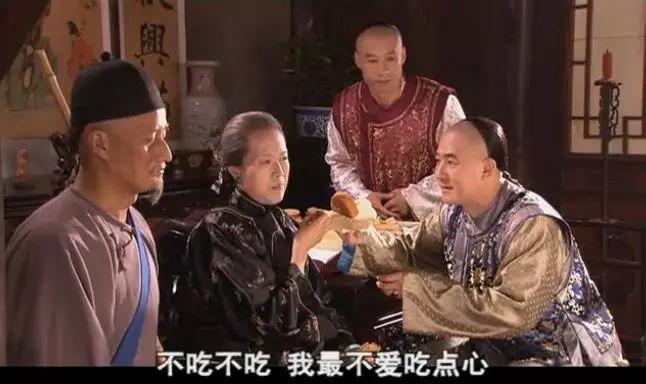 老大先买的糕点孝敬老娘,但是老太太不肯吃,不耐烦地推辞:哎呀我不饿。