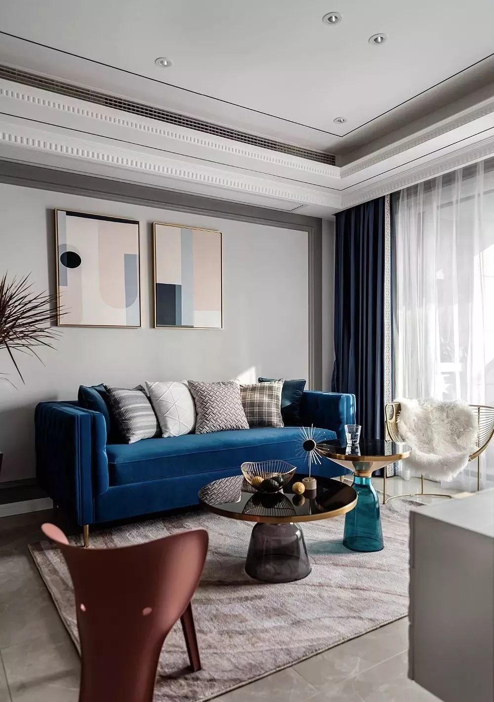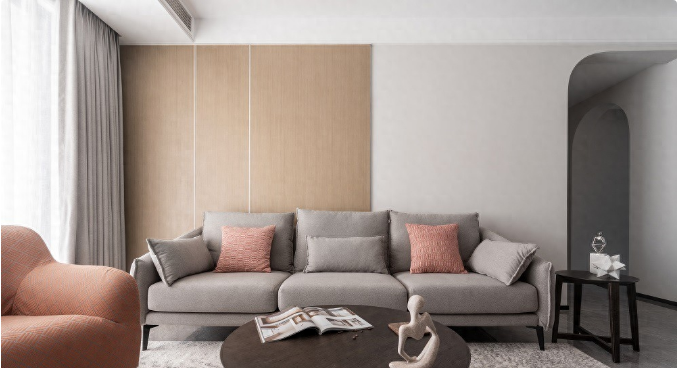 与乳胶漆搭配使用,拼色设计让沙发背景墙显得更灵活多变。