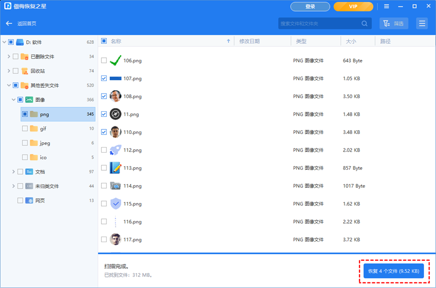 4. 等待扫描完成后,选择你需要的数据,然后点击“恢复x个文件”,再选择恢复文件的保存位置即可。