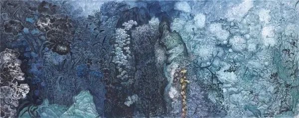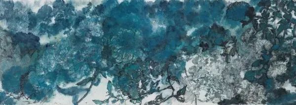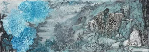 《苍郁的花火》, 2023, 纸本水墨设色, 70 x 140 cm