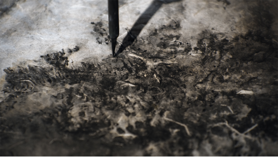彭康隆常常在不同材料与环境的关系中,寻找精微的表达。宣纸的白与周围的环境对比,非常的敏感。不同的环境光线、墨色影响下,就会产生变化。宣纸的白是最纯粹的白,但他用有颗粒感的蛤粉作为白,“就比较坚实,不会粉粉的。用好非常准确,同周边的墨色相互比较又产生很多变化,中间色值的变化就会很微妙。”