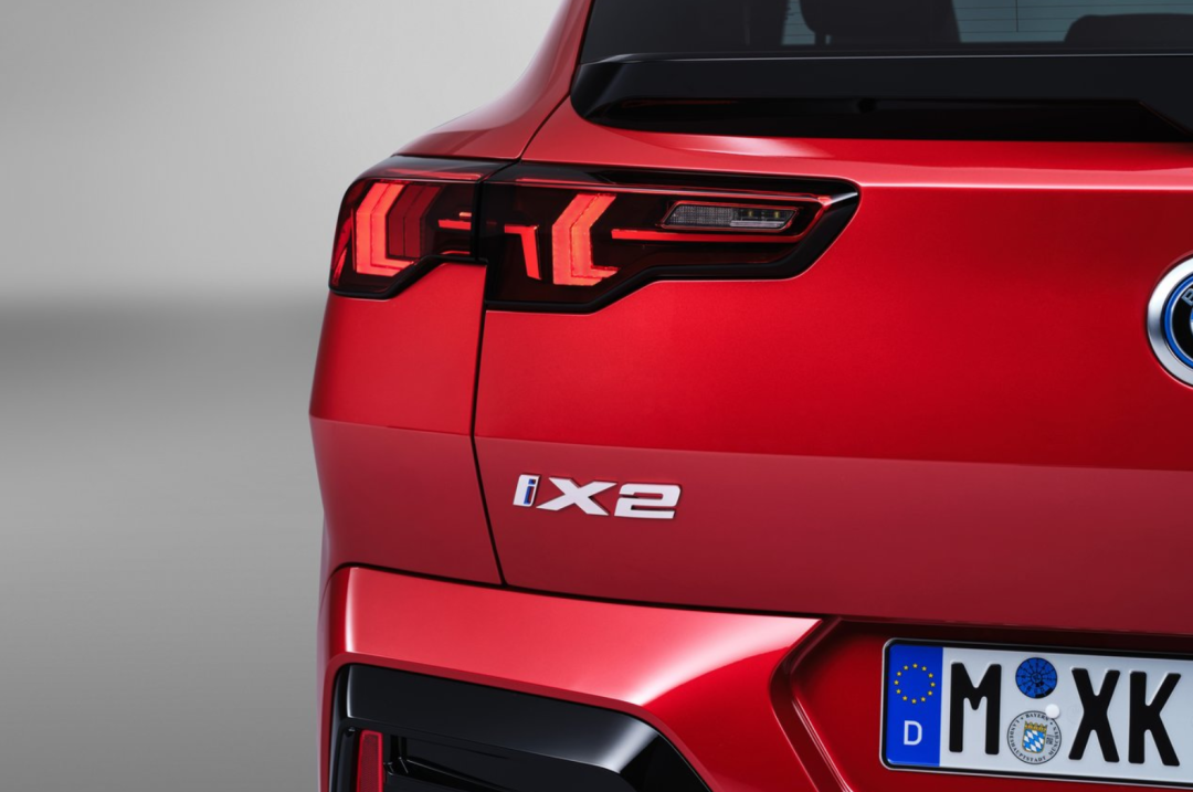 尾部造型,宝马X2/iX2都有着非常激进的造型,大面积黑化后扩散器搭配黑化后扰流板,基于宝马X2更讲究运动属性,其扰流板也更加夸张,并且配备双边共四出尾排,iX2为隐藏式排气。