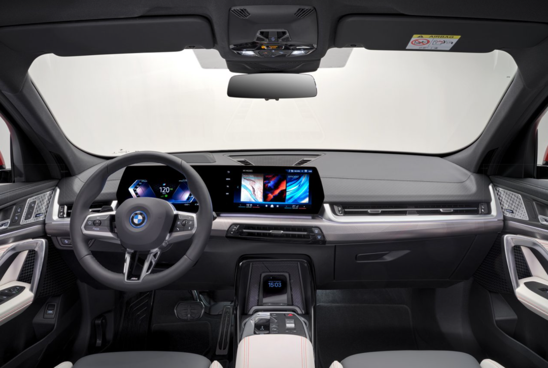 进入内饰,可以看出两款新车有着熟悉的设计,因为这个造型就是与宝马X1一致的设计,而这双联屏造型也预示着新车将会配备iDrive 9系统。
