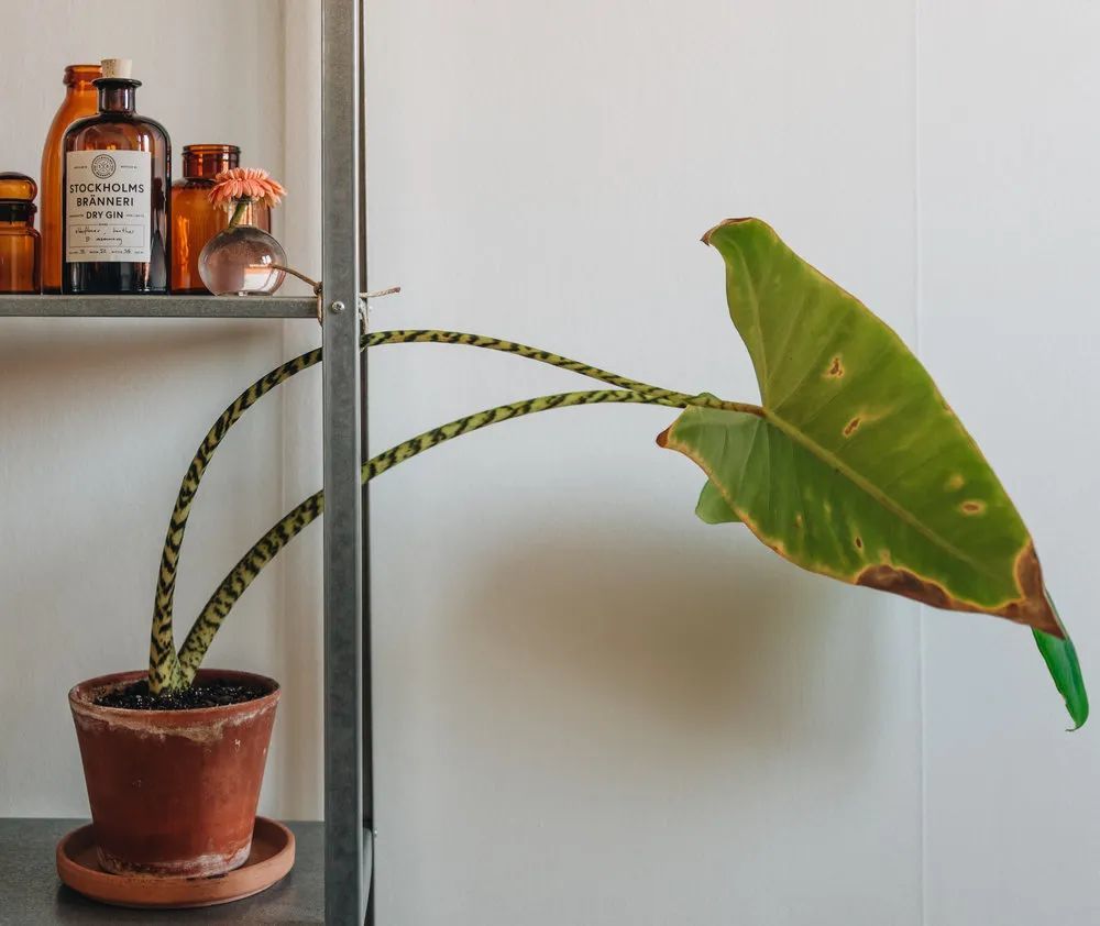 斑马海芋不是耐旱的植物,在盆土干燥的情况下,加上空气湿度比较低,叶子尖端和边缘很容易变棕色,尖端就容易干枯。