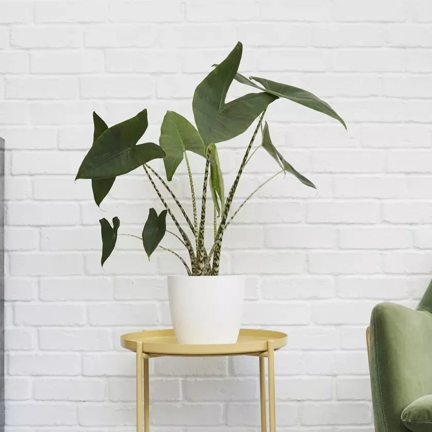 斑马海芋有着非常独特的造型,它的植株小巧,整个叶子的形态像一个箭头,叶面的叶脉是深绿色的,叶脉周围则是碧绿色的,会形成非常独特的网纹。