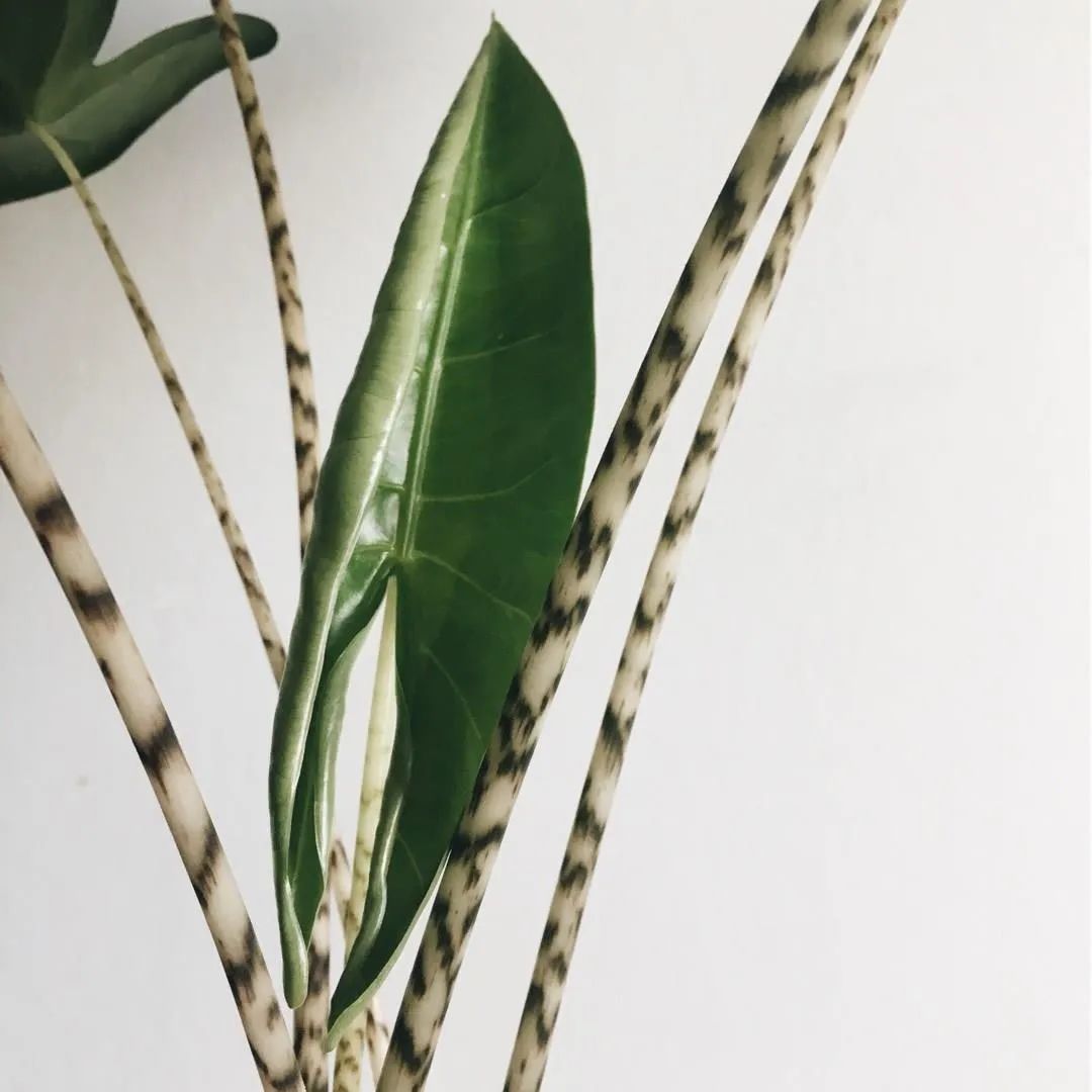 斑马海芋的叶子会比很多植物的花还要好看,它的叶柄是特别奇特的。现在基本是找不到野外存活的斑马海芋了,它也变得越来越稀有,所以就会变得比较昂贵。现在就有人专门培育斑马海芋,现在就出现了园艺观赏的品种。