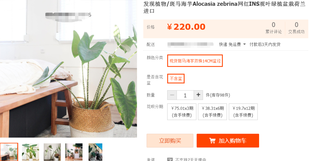 可以看到网上一株14厘米高的斑马海芋,价格都要200多块。