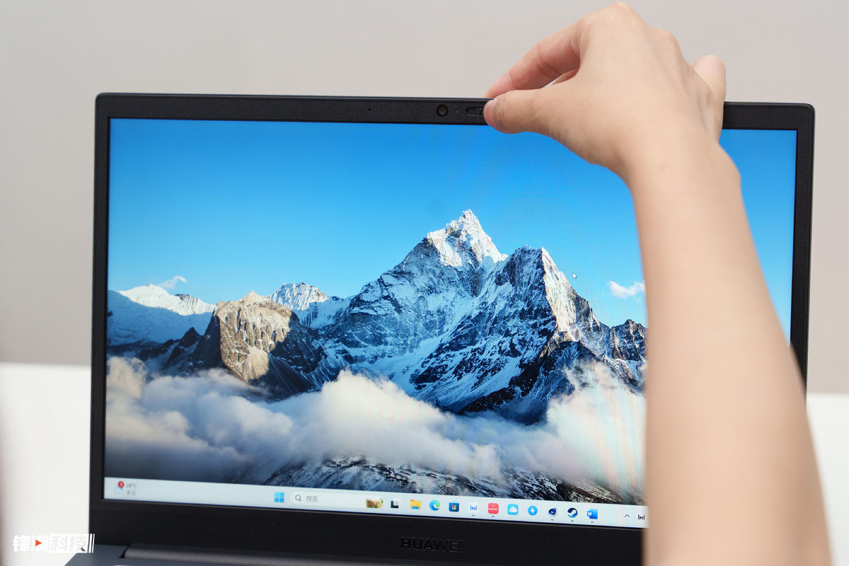 在屏幕部分,华为擎云 G540 则是采用了一块 14 英寸的 1080P 的全高清 IPS 防眩光屏幕。在屏幕的顶端还有一颗 720P 高清摄像头,搭配物理形式的隐私遮挡滑盖,轻轻一推就能保护我们的隐私。