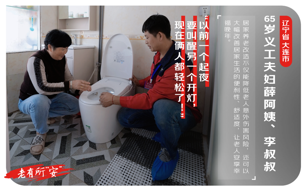 今年65岁的薛阿姨和李叔叔,在敬老院做了8年义工。李叔叔之前干活时摔倒,留下了腿脚不便的后遗症,每次起夜都得让老伴帮忙下床开灯,家里的马桶坐便圈开裂,使用起来也有安全隐患。