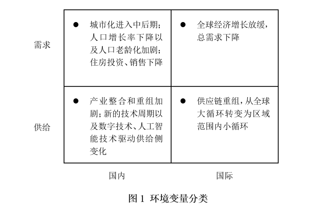 近年来,家居企业所处的经营环境已经发生以及正在发生重大变化。这些变化对家居行业内的所有企业都构成严重挑战。这里,我们用一个简单的双维度四象限模型分析重要的环境变化因素(图1)。