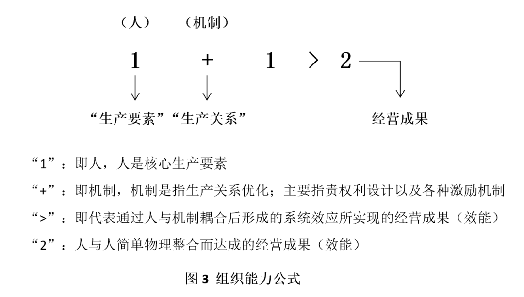 ——组织能力以“人”为核心;没有“人”,组织能力就失去了载体。同时,组织能力也包含机制因素。“人”与“机制”不可偏废。两者在业务场景中相互作用、相互激发、同频共振,产生化学反应和系统效应。概言之,组织能力是人与机制相耦合,通过机制释放人的潜能,形成持续性竞争优势的能力(图3)。