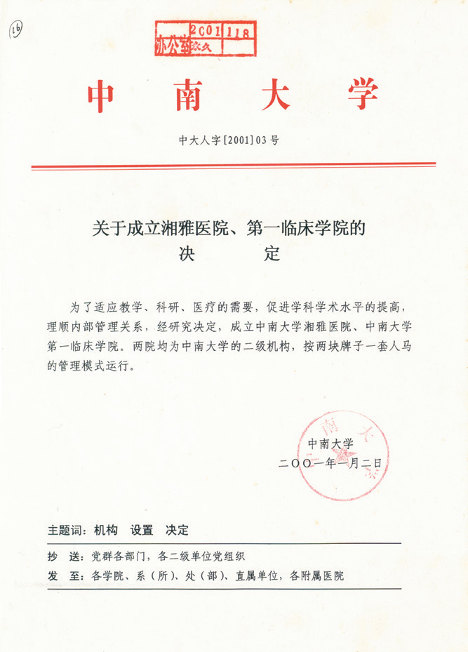 2001年,医院正式更名为“中南大学湘雅医院”,历经近一个世纪的跌宕起伏后,迈上了新的旅程。