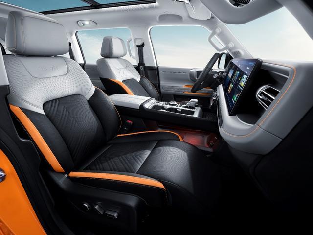 内饰方面,首创五联屏智能座舱,双屏互动、三指飞屏、无线投屏等功能,让路上的娱乐更加丰富多彩。车内使用大面积软包覆盖,1.2㎡可开启全景大天窗更是硬派越野车的罕见配备,采光面积同级领先,为用户带来更加温馨和豪华的驾乘生活。全新BJ40的外观、内饰双重进化,可谓是“颜型举指”,好看到叫人竖起大拇指,带来一眼入魂的设计美学之潮。