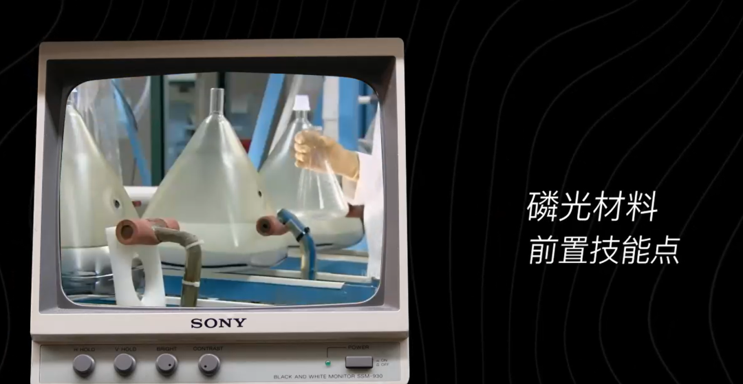 为啥提这事儿呢,因为不同颜色的磷光材料,是彩色电视的前置技能点,放大一个彩色CRT的屏幕,你会看到这些点状分布的三色磷光。