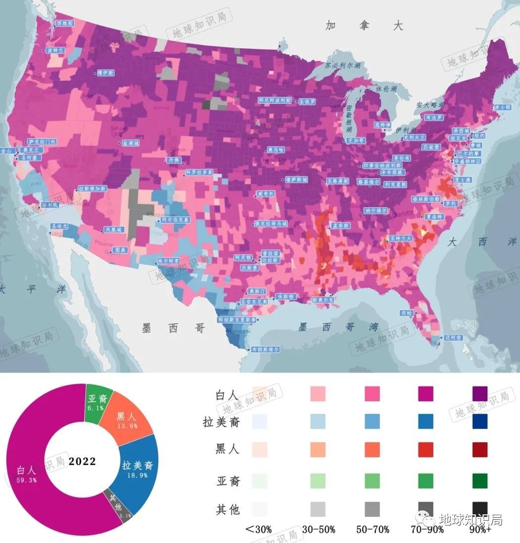 2022年欧洲白人仍然以59.3%占据美国主体民族地位