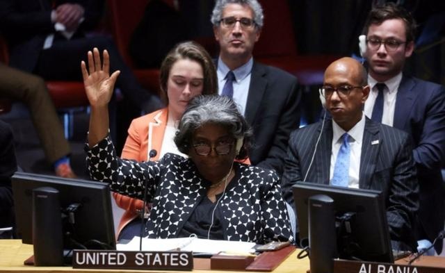 10月18日,联合国安理会第二次就巴以问题决议草案进行投票,面对这样一份原本应该是“众望所归”的提案,美国常驻联合国代表格林菲尔德却在反对票阶段举起了她的右手,动用了安理会常任理事国的一票否决权。