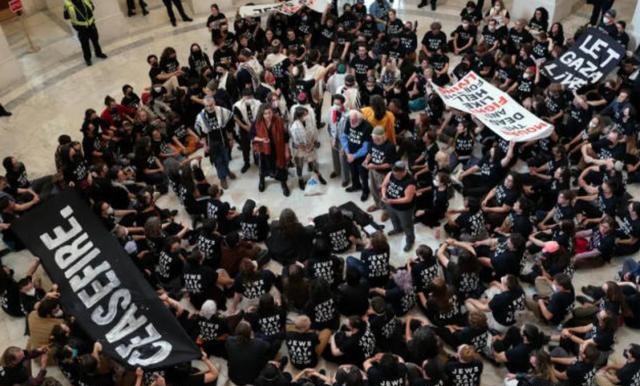 在10月18日,大批示威者包围了美国国会大厦,他们高举着“犹太人要求立即停火”“让加沙生存”的口号标语,要求拜登政府呼吁停火。随后,抗议活动愈演愈烈,大约有350人冲进了国会大厦,并与警方发生了冲突,不过经历了2021年的国会骚乱后,美国警察也有了充分准备,当场就逮捕了300名示威者,没有让事态进一步扩大。