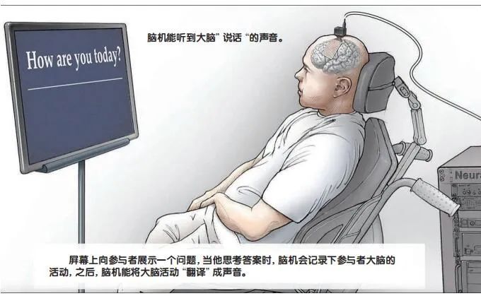 让大脑说话的技术我们现在已经有点熟悉了,这个技术也被称为脑机。美国加州大学的神经学家爱德华·常带领的团队计划用三个步骤实现“大脑说话”,首先在志愿者的大脑中植入一块电极,之后,志愿者被要求大声朗读指定的数百句话,电极会记录下志愿者朗读过程中运动皮层的神经元的放电模式。研究者将大脑神经信号与发音器官的动作联系起来,破译大脑神经元是如何控制嘴唇、下巴、舌头和喉咙等器官的协作的。最后,科学家们将破获的“密码”教授给电极,当它再感应到相应的神经信号或者发声器官的动作时,它就能知道人们说了什么并代替人们说出来,甚至能模仿志愿者的声音。