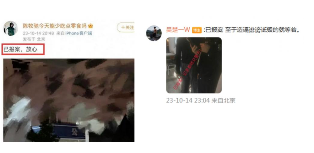 在舆论陷入混乱的时候,陈牧驰和吴楚一都发文表示,自己已经进行报案处理。