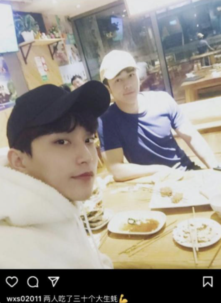 10月13日,一个叫“Rdf11”的账号爆料称曾在ins上追过一对男男cp,一个叫吴楚一,cp的另一位主角则非常像陈牧驰。两人不仅一起纹纹身贴,更是陪同面试、去训练营探班、一起吃三十个大生蚝......