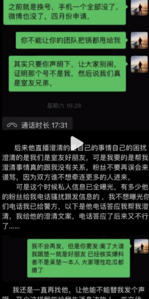 吴楚一说,在发第二条微博前,自己很积极的找过陈牧驰,希望他澄清自己和爆料的小号无关,但是陈牧驰却在直播中只字未提,其团队依旧将脏水泼到自己身上,陈牧驰的粉丝也对自己进行持续的谩骂和骚扰。