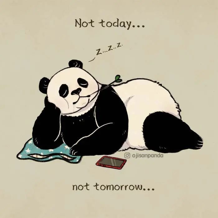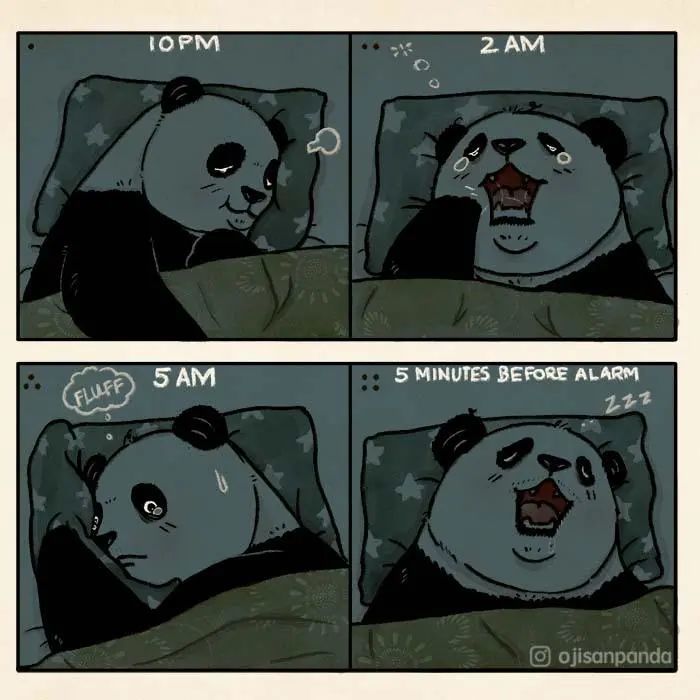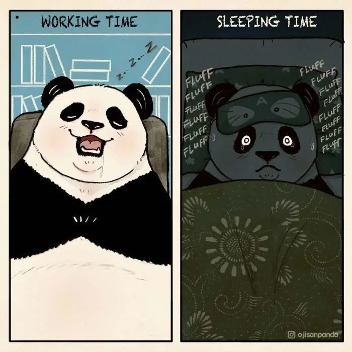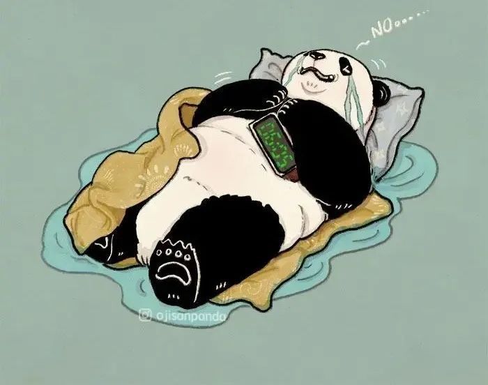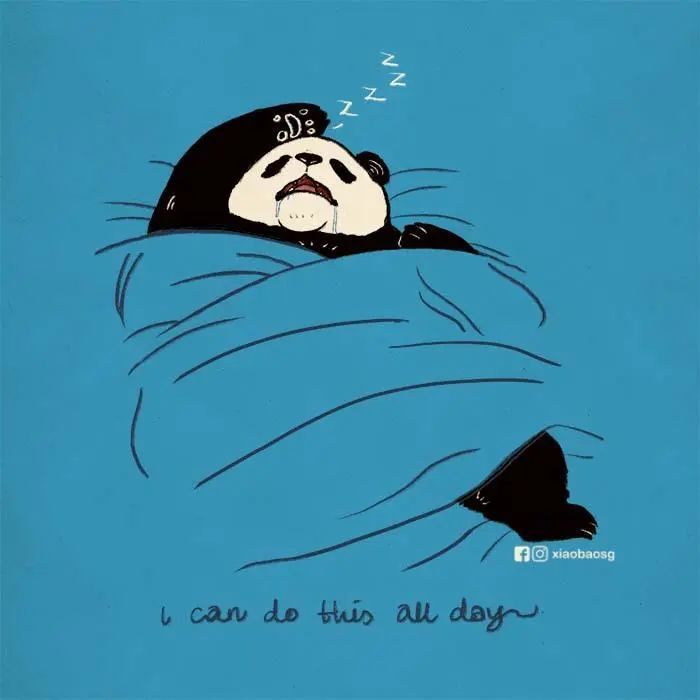 国外一个署名为“小宝”的插画家,就创作了一系列主角为一只中年熊猫的插画,这只熊猫经常失眠、暴食、不够自律,体重总是超出自己的控制,早上起不来,晚上睡不着,整个状态就跟你我一样。这组插画让每一个平凡的普通人,都产生极强的共鸣感。