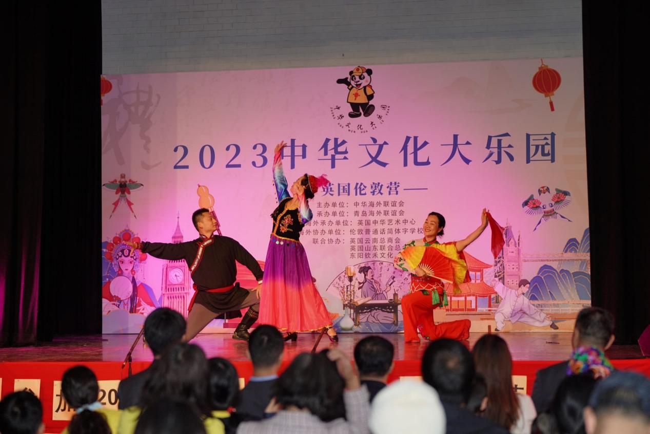 授课教师们还进行了中国武术、民族舞蹈、民歌、国画、古琴、书法、朗诵等节目的表演,浓浓中国风、悠悠中华情充斥着欢乐的舞台,英国中华艺术中心主任毛埴鋮倾情演唱《少年中国说》。在精彩的表演后大乐园活动正式拉开序幕。