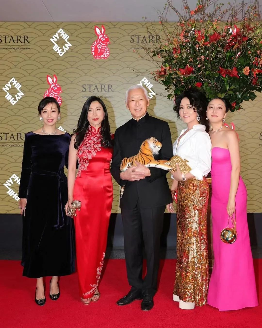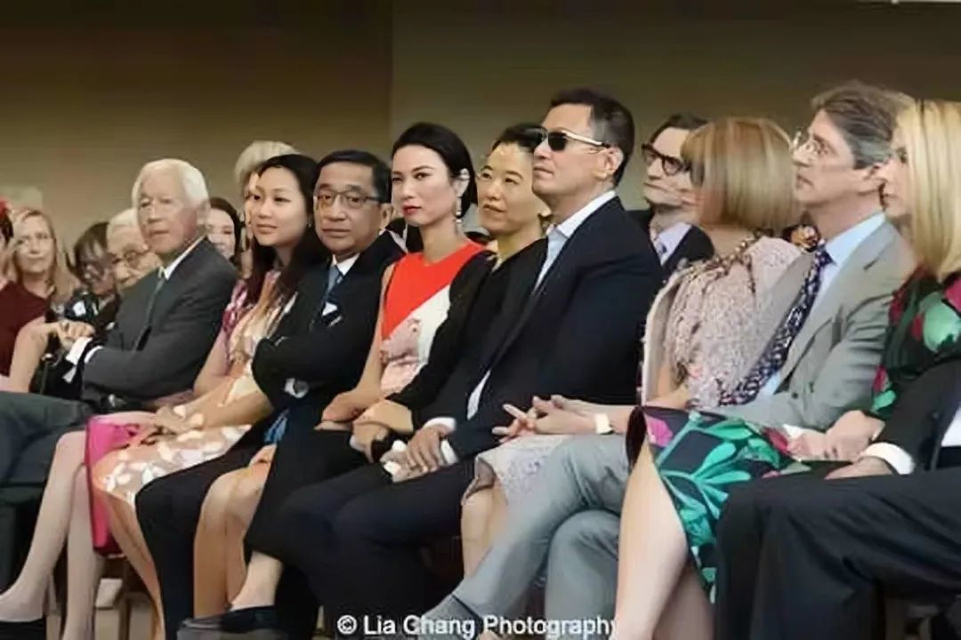 作为大都会博物馆首位华裔董事,2015年Met Gala“中国:镜花水月”活动现场,他还和联合主席邓文迪同框了一把,夹在两人中间的是永新集团总裁曹其锋和女儿曹颖惠,邓文迪和“女魔头”安娜温图尔中间坐的是王家卫夫妇。