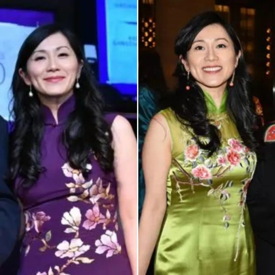 梁周洋还出席了纽约爱乐乐团春季晚宴,和唐骝千夫妇亲密合影,紫色丝绒长裙搭配盘发造型很显气质。