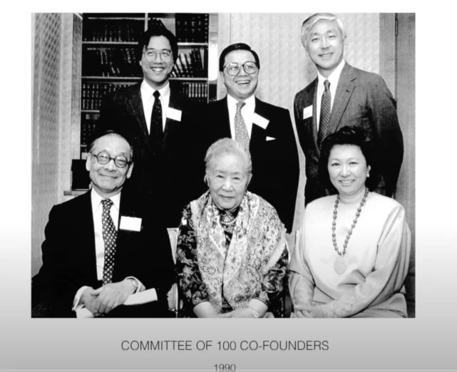 为了提升华人在美国的社会地位,唐骝千还在1990年联合贝聿铭(前排左1)、马友友(后排左1)等人一同创立精英组织百人会,旨在“消除偏见、求同存异”↓