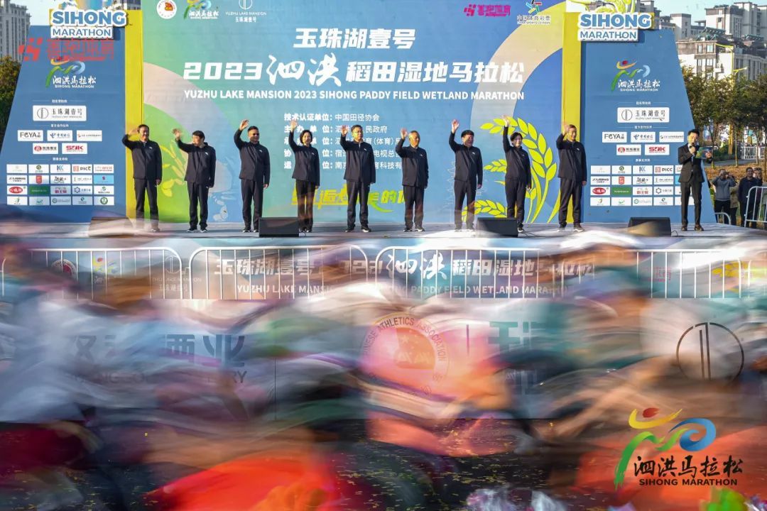 10月22日上午7:30分玉珠湖壹号2023泗洪稻田湿地马拉松鸣枪开跑,1万名选手从泗洪城南公园出发迎着秋风,用奔跑的方式领略着“湿地之都 水韵泗洪”的温婉秀丽。