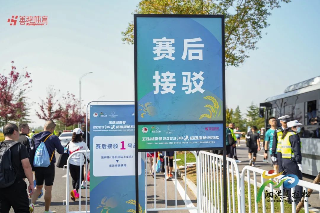 赛前3天,组委会在宿迁高铁站和泗洪汽车南站,安排接驳专车接送外地跑者,赛事当天在全县安排4个接驳专线赛方便跑友抵达赛事起点。
